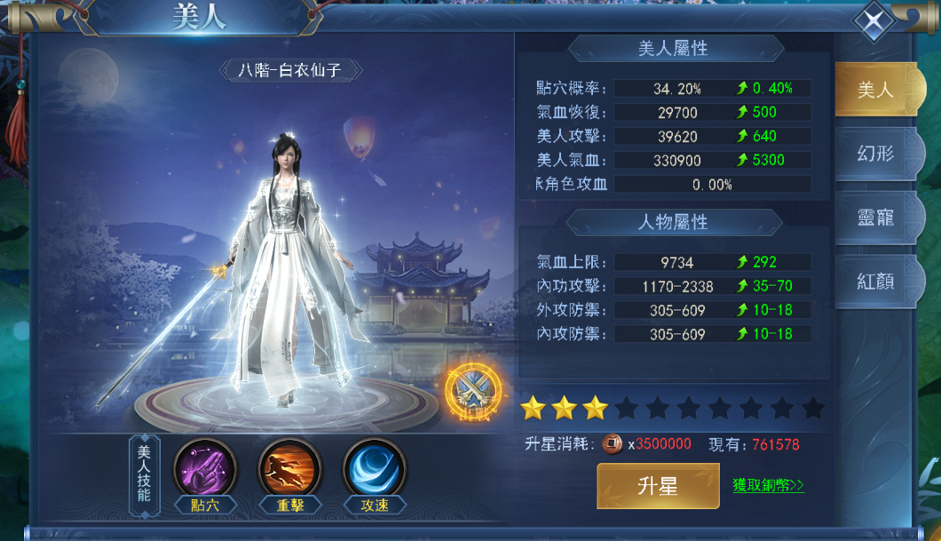 跟隨主線任務我們可以獲得侍從,使用銅幣即可升級,侍從有點穴、重擊、攻速、神力技能,啟動可大大提升戰鬥能力,成為野外打怪生存的強力助手。